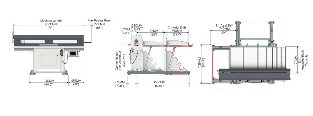- Bar length capacity: 60” (max. bar length determined by spindle length)